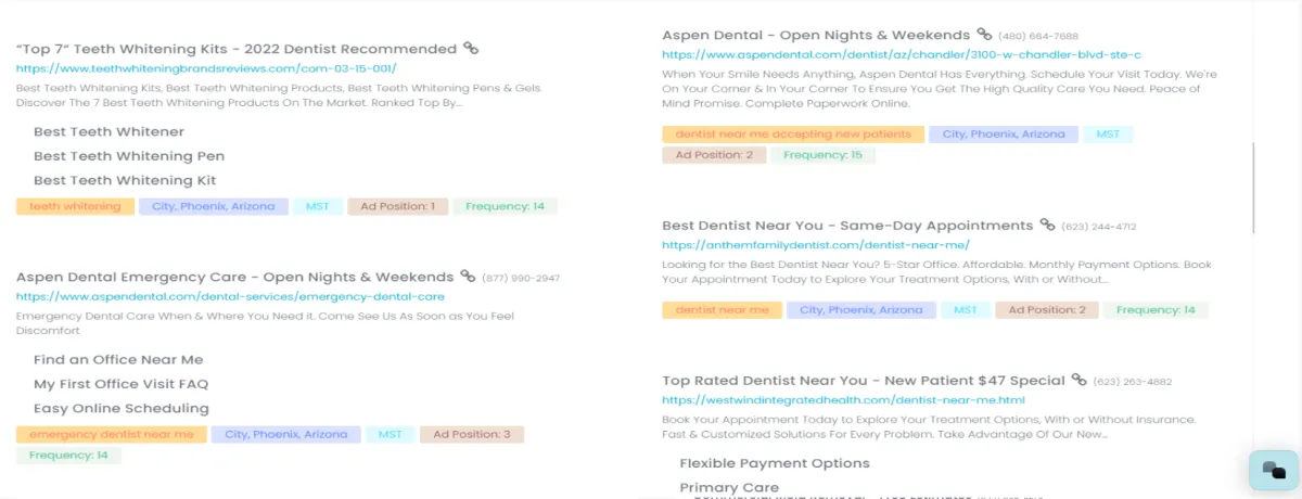 Get The September 2022 Google Ads Intelligence for Phoenix Dentists